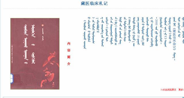 该页面的由书籍封面、书籍的摘要信息和书籍目录组成。点击书籍的封面或摘要信息下方的“点击浏览原文”进入书籍的在线浏览页面,选择下方的相应目录将跳转到书籍在线浏览与目录所对应的页数上进行浏览。如下图所示: